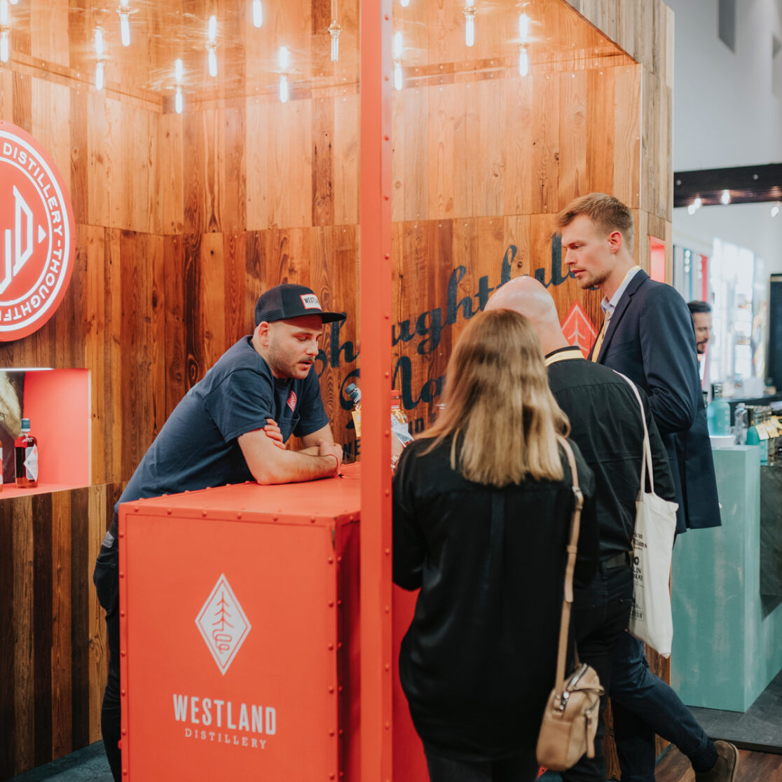 We were delighted to design a compact exhibition stand that mirrors the headquarters of this fascinating distillery in Seattle, USA. Renowned as one of the top American single malt whiskey producers, the brand adopts a craft beer approach in its distillation process. Utilizing an extensive selection of malts, including unique varieties like chocolate and Munich malts, the distillery creates a distinctive whiskey blend. Additionally, a brewer’s yeast is employed, and all the barley is sourced from within the US, further emphasizing their commitment to quality and local produce.